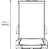 Đế kim loại, vỏ trên bằng nhựa, chảo thép không gỉ có thể tháo rời, kính chắn gió, móc cân tích hợp bên dưới, giá đỡ an toàn, khóa hiệu chuẩn và nắp đậy khi sử dụng