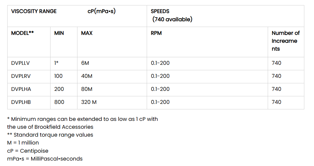 • Khoảng đo: 1 ~ 320.000.000 cPs