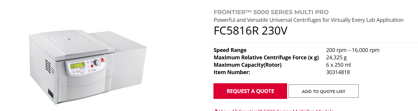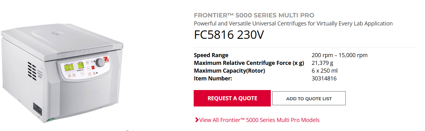 Thông số kỹ thuật Máy Ly Tâm Lạnh Ohaus FC5720 - Frontier™ 5000 Series Multi Pro